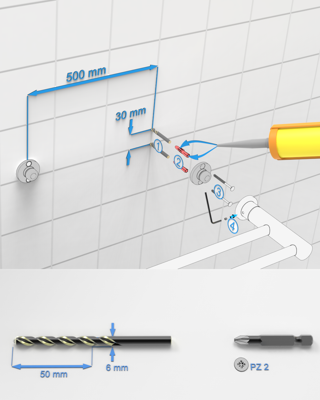 Twin Towel Rail 500 mm chrome